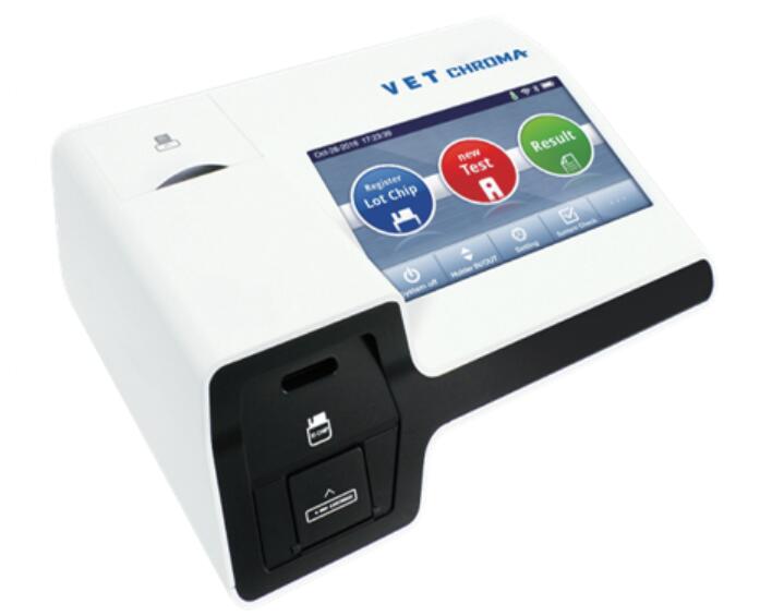 韓國(guó)巴迪泰公司是一家專業(yè)的獸用診斷設(shè)備公司,其產(chǎn)品行銷全世界100多個(gè)國(guó)家。我院引進(jìn)的VET CHROMA型熒光免疫分析儀是率先應(yīng)用于小動(dòng)物臨床的免疫熒光檢測(cè)設(shè)備。該儀器利用高敏感度熒光檢測(cè)技術(shù),能準(zhǔn)確高效的對(duì)樣本進(jìn)行檢測(cè),且具備優(yōu)秀的再現(xiàn)性,檢測(cè)時(shí)間15分鐘。檢測(cè)項(xiàng)目包括CRP、SAA、孕酮、皮質(zhì)醇、甲狀腺T4等,且后續(xù)還將推出新的檢測(cè)項(xiàng)目。
