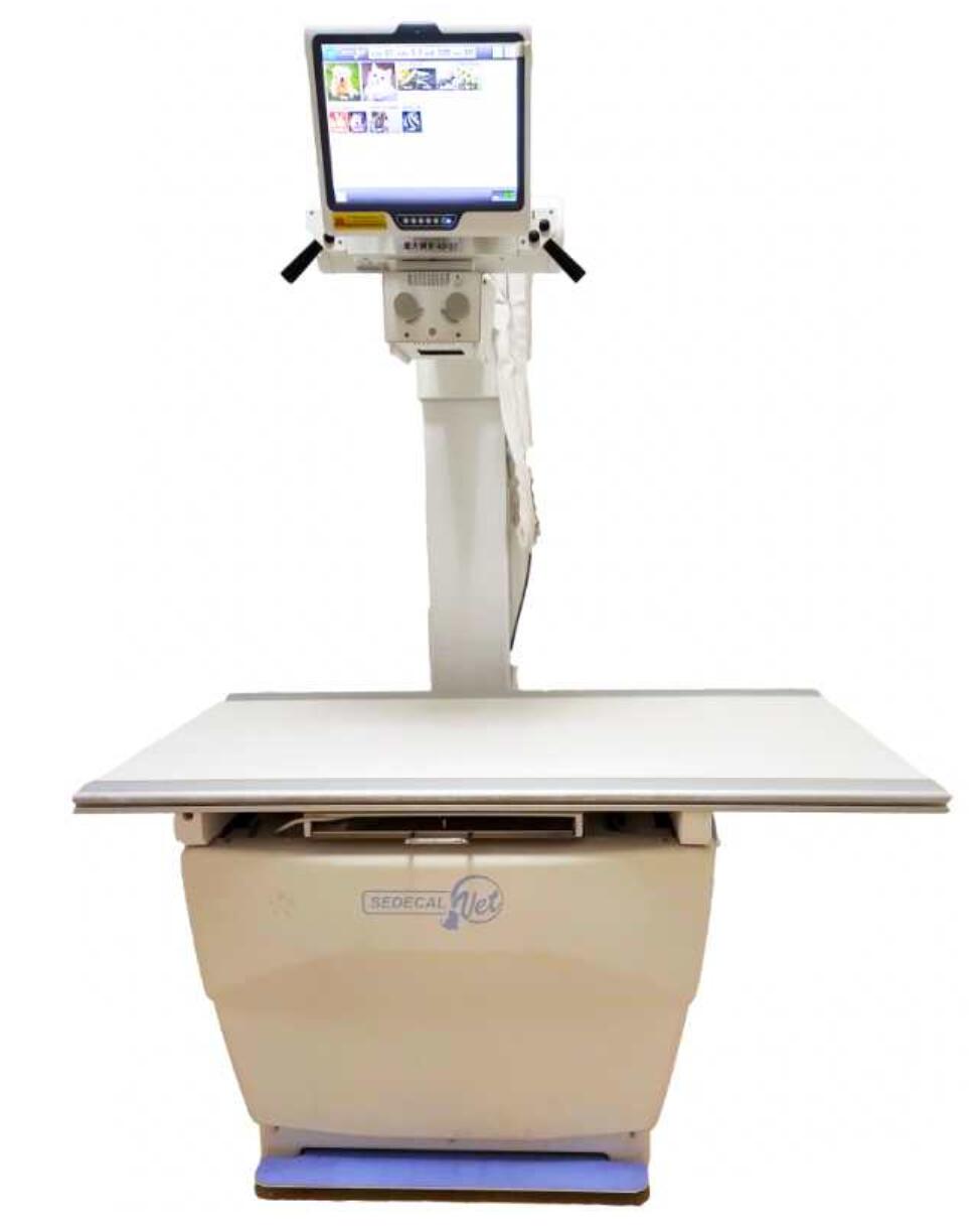 數(shù)字化X線成像系統(tǒng)是現(xiàn)代寵物臨床診療的必備儀器,其具有拍攝清晰、輻射小、測量功能豐富、圖像保存方便等優(yōu)勢,已基本取代了常規(guī)洗片式X線片。西班牙賽德科醫(yī)療設(shè)備有限公司是歐洲很大的醫(yī)療設(shè)備制造商,我院引進(jìn)的Neovet型動(dòng)物用數(shù)字化X線成像系統(tǒng)在歐洲和國內(nèi)具有良好的口碑。其球管和探測器均為業(yè)內(nèi)高級廠家生產(chǎn),高管電流320 mA,短曝光時(shí)間≤1 ms,探測器采用非晶硅硫氧化釓材料,配合專用動(dòng)物圖像處理軟件,很大限度地提升了圖像質(zhì)量,有效提高了疾病的診斷效率。自帶犬、貓、嚙齒類動(dòng)物、鳥類、兩棲爬行類動(dòng)物的拍攝參數(shù)。該機(jī)型配備的彩色LCD觸摸屏,可以快速選擇動(dòng)物種類、拍攝部位、擺位、部位厚度等參數(shù),更大地提高了拍片效率,減少了動(dòng)物保定時(shí)間。